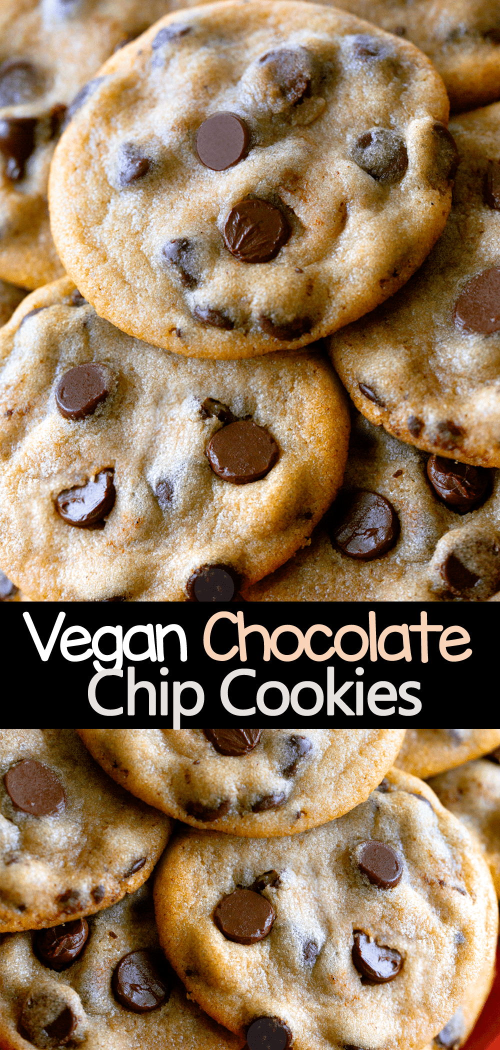 This is the best recipe for vegan chocolate chip cookies you will ever find. Soft, chewy, and melt in your mouth delicious, they are everything you could ever want in a chocolate chip cookie recipe!