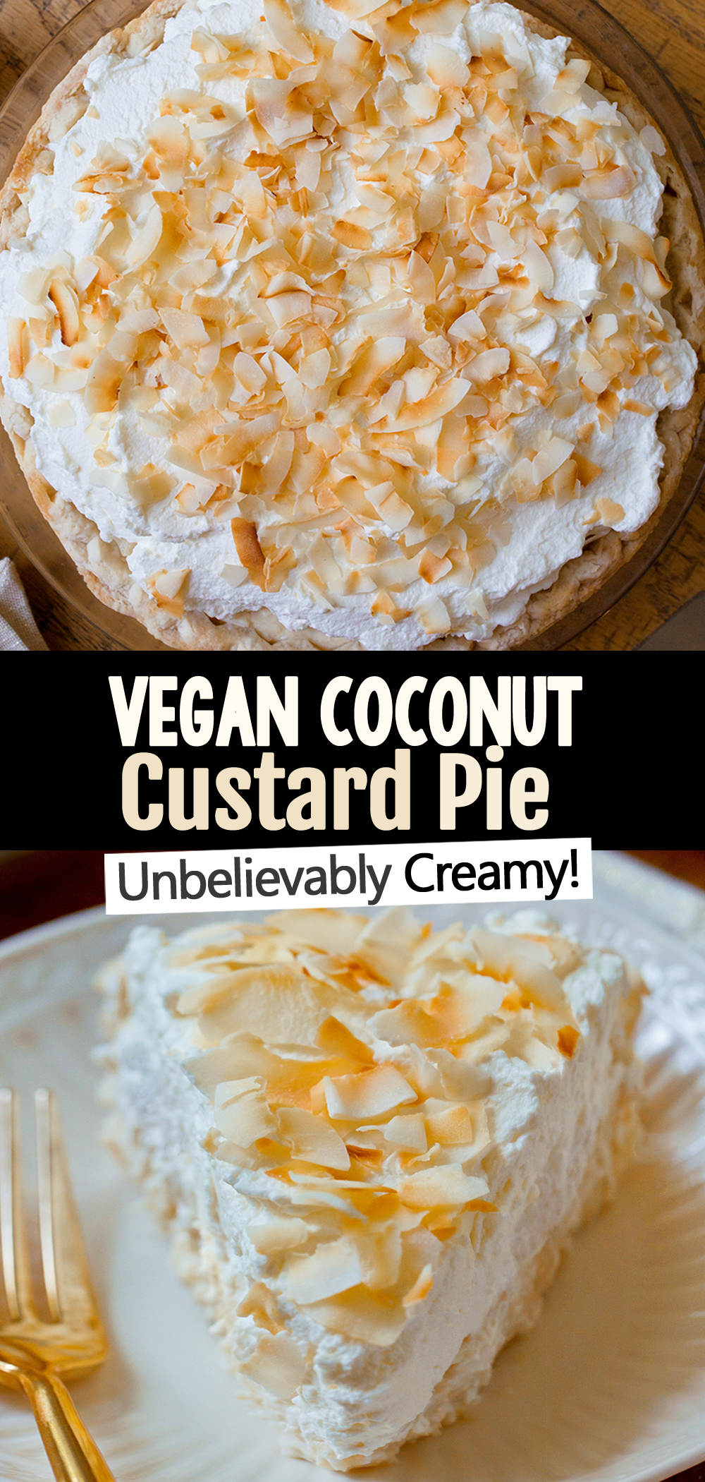 This vegan coconut pie recipe is so luxuriously creamy. Layers of coconut whipped cream and toasted coconut top the most delicious coconut custard filling!