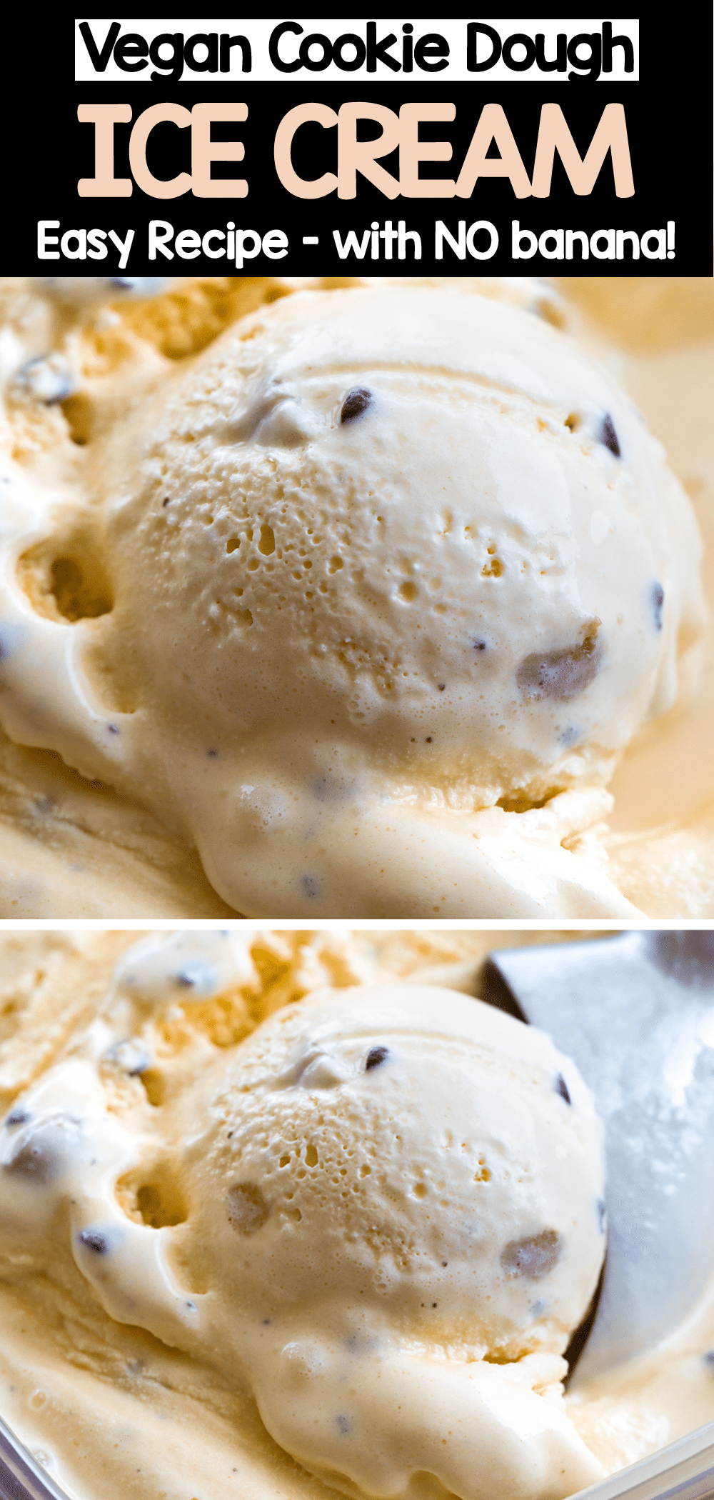For a cookie dough vegan ice cream with no coconut, simply use any one of the following recipes for the ice cream base and add the cookie dough at the end.