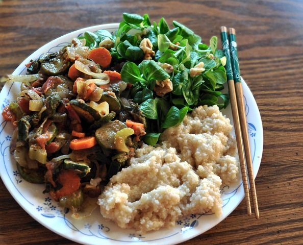 Directions: First—and this step is optional—pulse the flakes in a small magic bullet cup or blender if you want the texture of grits (or oat bran). Otherwise, start with step two: Cook the grain in a small pot, with the water and salt, until most of the water is absorbed. Add the vegan butter. (You can also add more salt, to taste.)
