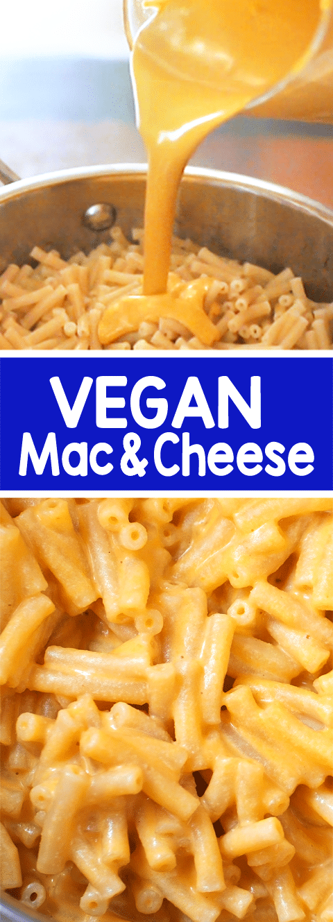 This cheesy homemade vegan mac and cheese recipe will take you straight back to the classic macaroni and cheese from your childhood!