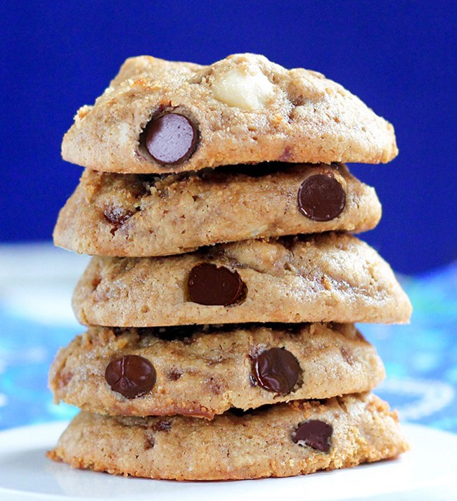 The recipe calls for chickpeas or white beans, pure vanilla extract, chocolate chips, oats or almond flour, nut butter or an allergy friendly sub, milk of choice, and a pinch of salt and baking soda.