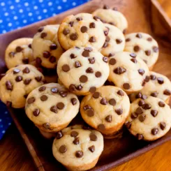 To make protein muffins, preheat the oven to 350 F. Grease or line a muffin tin. Whisk the wet ingredients in a bowl. Stir in remaining ingredients just until evenly mixed. Pour into the muffin tins. Bake 19 minutes. The protein muffins should look domed when you take them out. Allow to cool before removing from the tins. If you let them sit loosely covered overnight, the liners peel off easily by the next day.*If you prefer to make mini muffins like the ones in the photos and recipe video, decrease baking time to 12 minutes. It will yield 22 mini muffins.View Nutrition Facts
